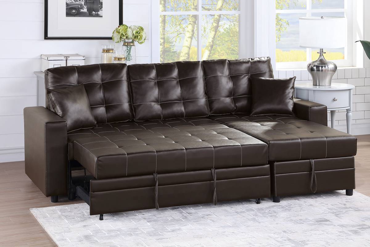 Overall: 88" x 57" x 33"H; Sectional w/ Pull-Out Bed: 88" x 57" x 33"H ; Reversible L/R Chaise w/ Storage: 32" x 57" x 33"H