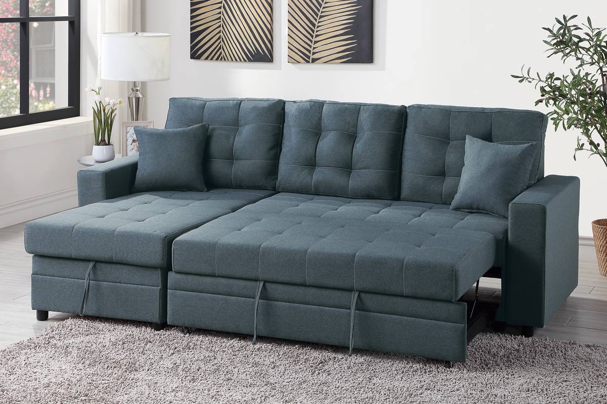 This versatile sofa keeps your living space organized and inviting. The chaise portion contains a storage area for those extra blankets or pillows. Lift the convenient chaise seat cushion with the handle, and you will be one step toward having a tidier space. Its reversible design allows you to easily integrate any room layout. The sofa contains a hidden sleeper feature to expand and accommodate guests or for those cozy movie nights.