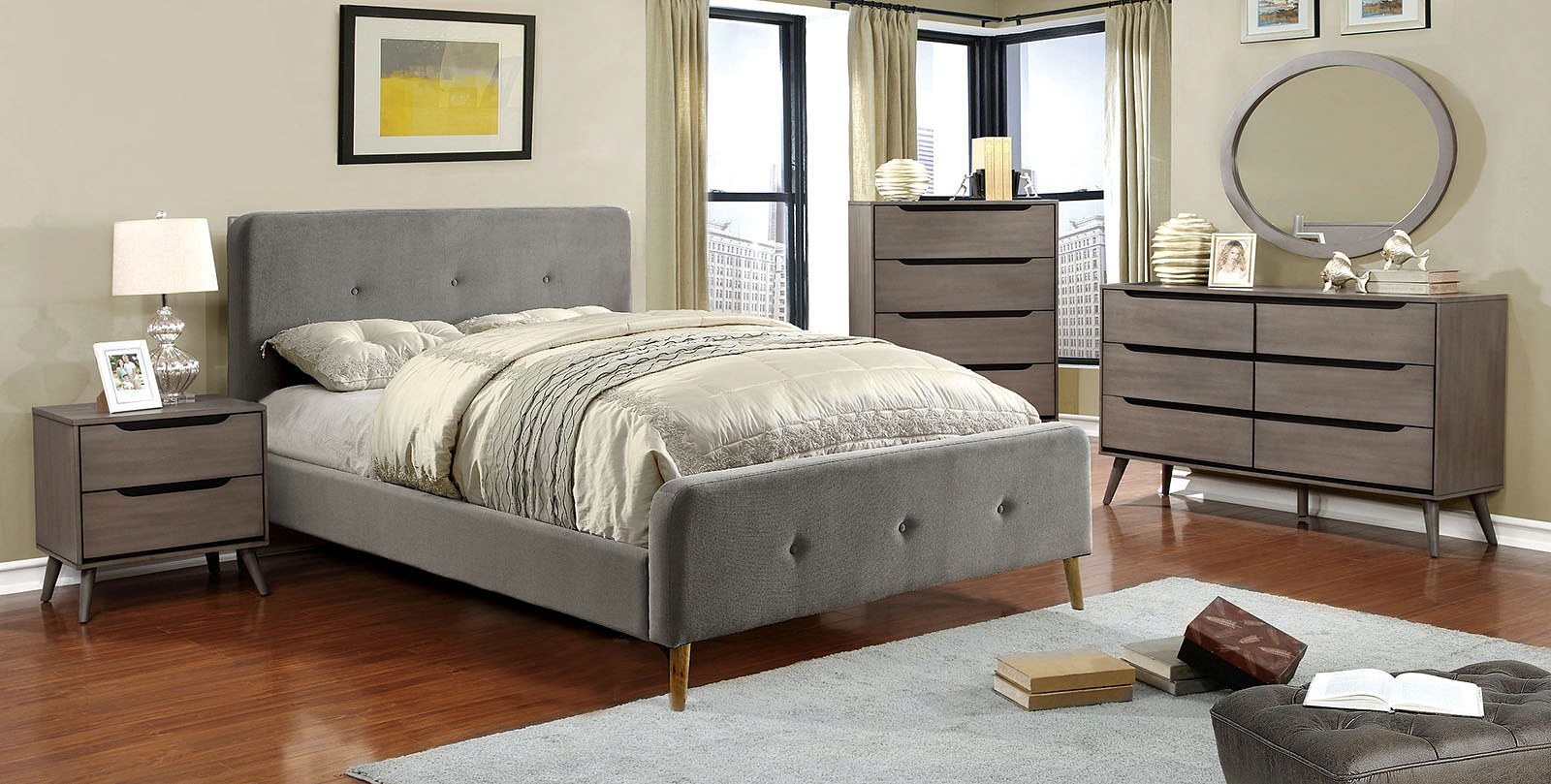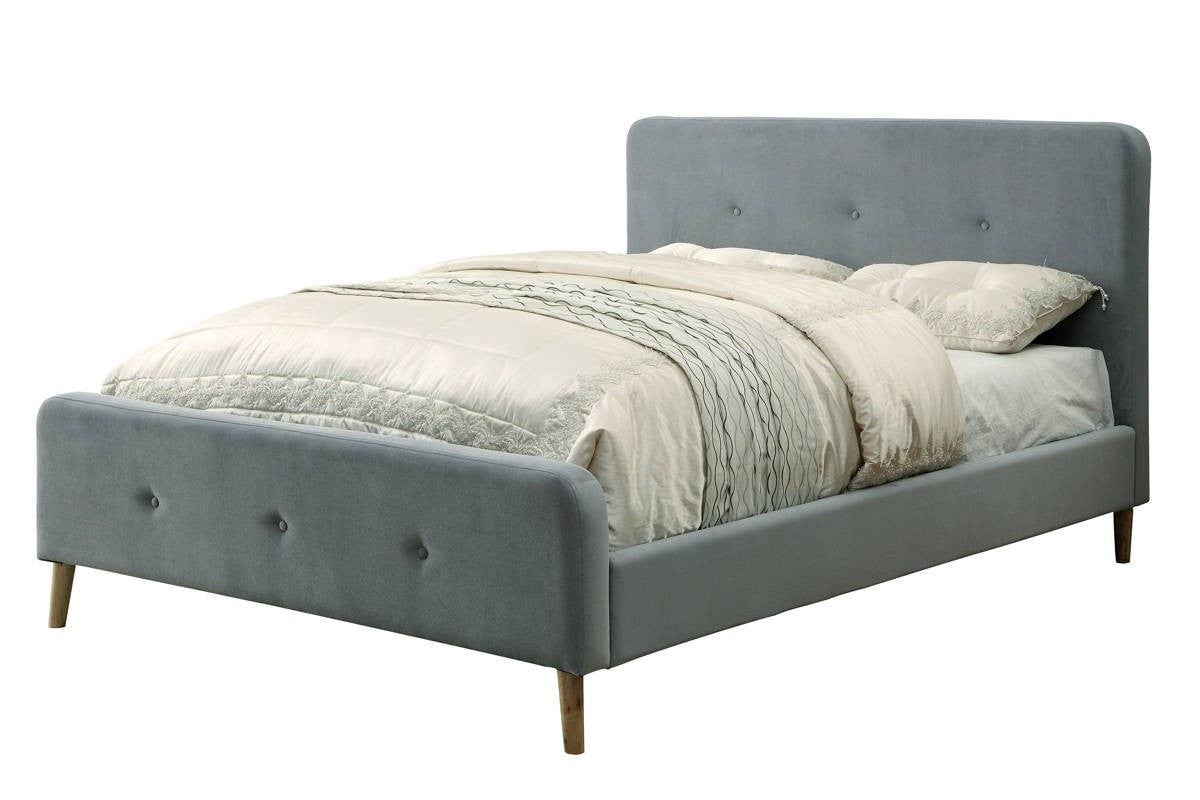 These platform beds each feature smooth and inviting flannelette upholstery that allows the striking color options to make a statement. Curved corners, button accents and angled legs work together to add a touch of mid-century modern to the setting.