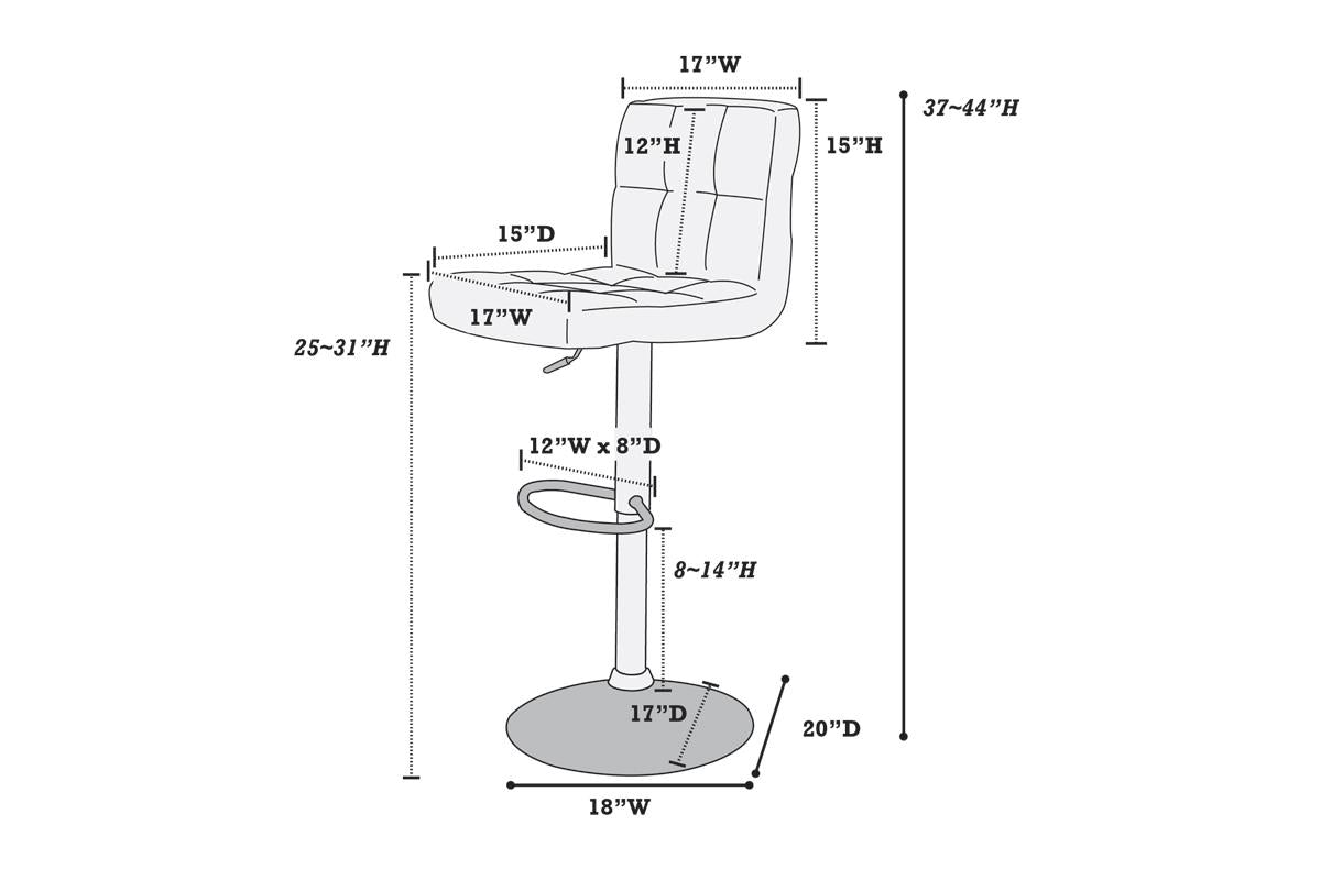 | Dimensions | 18" x 20" x 37"~43"H; Seat 25"~31"H |