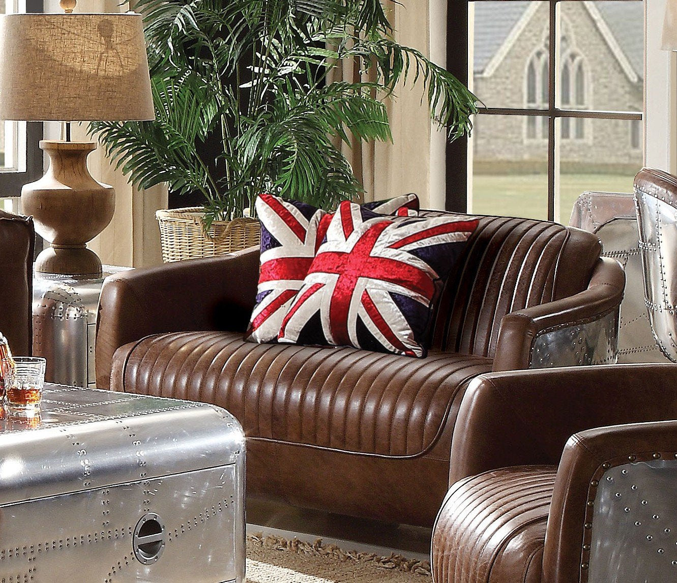 This is an incredible design with curved lines, combining with aluminum and leather together to bring you a vintage sensation in the living room. Characterized by shelter arms and retro brown top grain leather, wrapped with aluminum panel for most of the sofa set, our Brancaster is absolutely an eye-catching decoration in your home. Modern and comfortable is your best choice. It will not be monotonous in your living room.