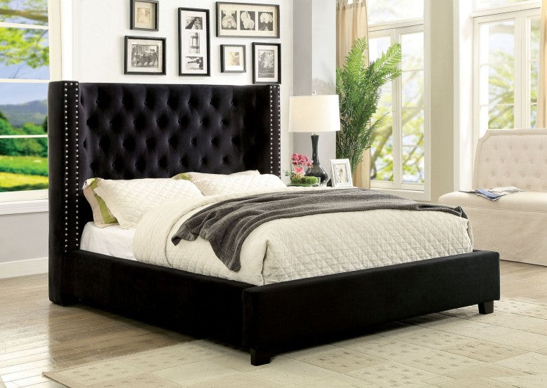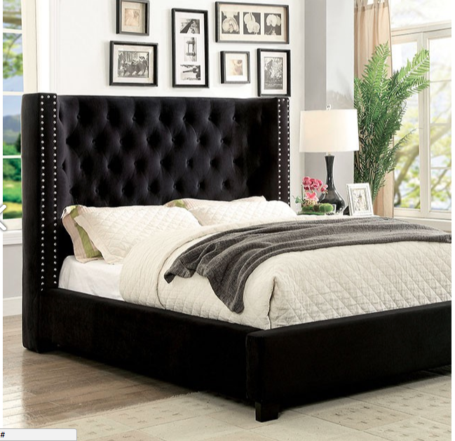 Kick back and relax in this contemporary style bed designed to maximize your comfort in the ultimate fashion! Lean back and feel the full support of the padded flannelette fabric and button tufted wingback headboard. The nailhead trim adds a touch of sophistication for a modernized look, upheld by wooden framework.