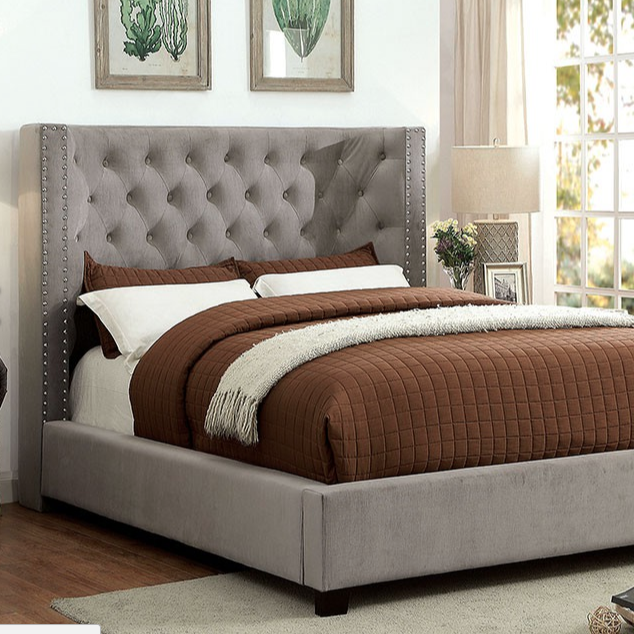 Cayla Upholstered Bed, Gray
