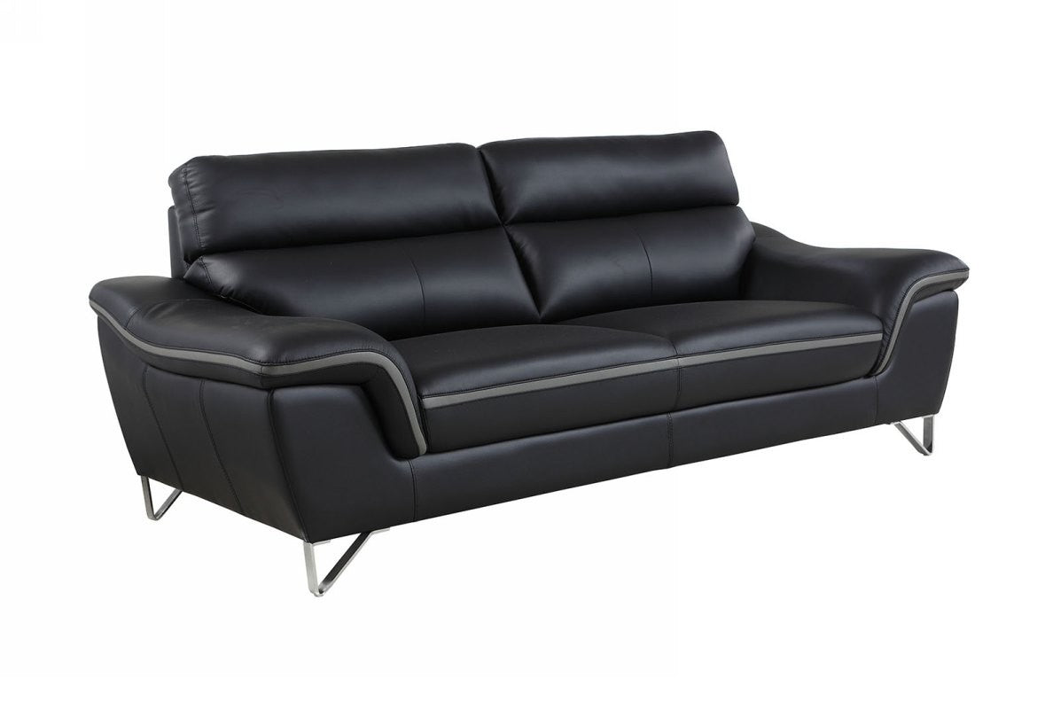 Contemporary Premium Leather Match Sofa - Black with gray accent