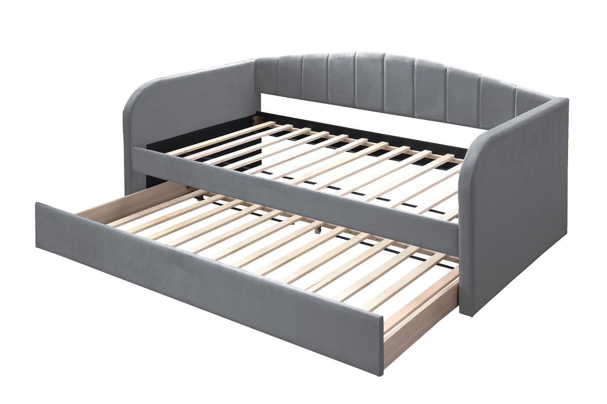 This day bed is ideal for both lounging and accommodating guests overnight. The included slats provide excellent support for a restful sleep or relaxing afternoon nap, while the convenient trundle offers extra sleeping space whenever you need it. Crafted with velvet material, this day bed offers unparalleled comfort and elegance, making it the perfect addition to any modern living space.