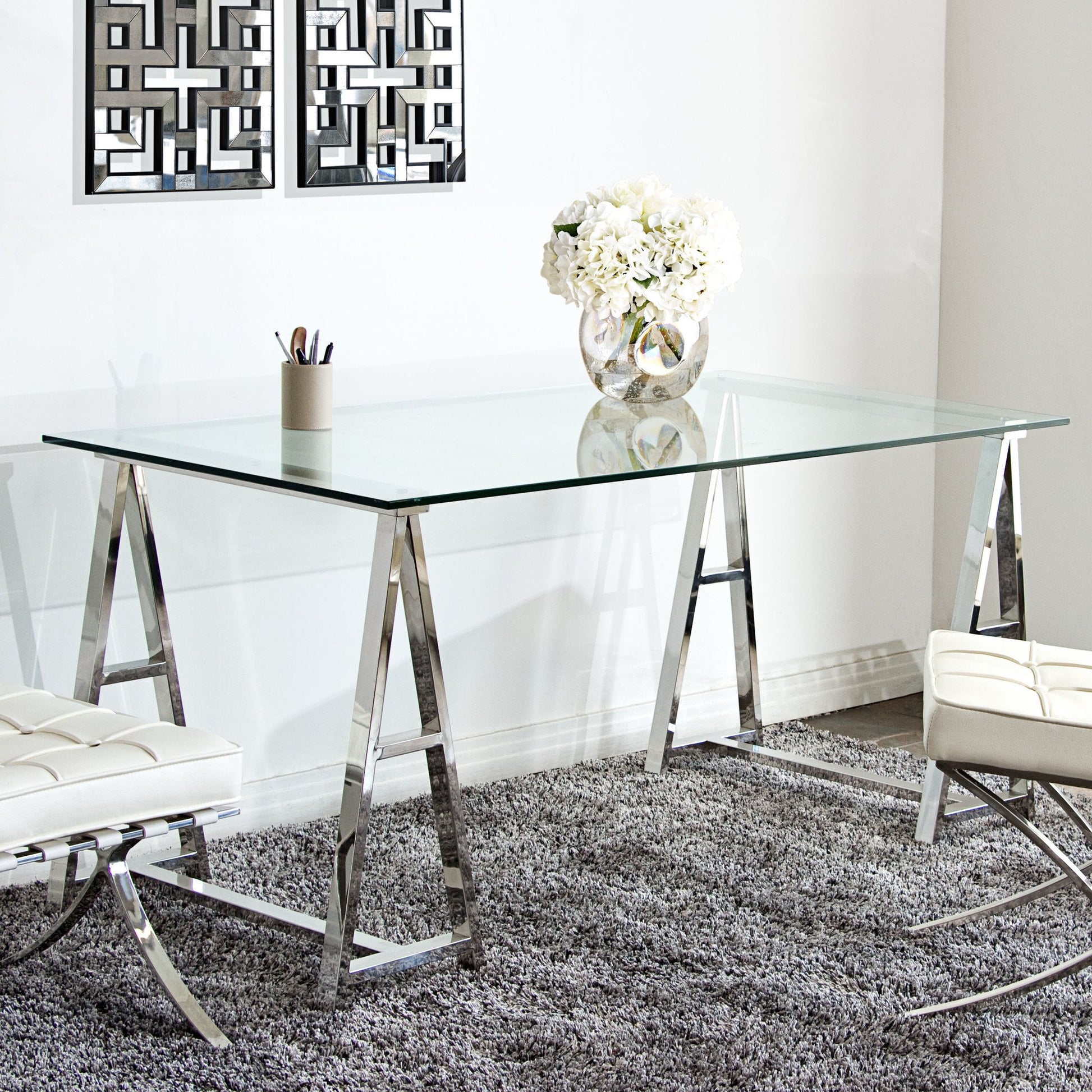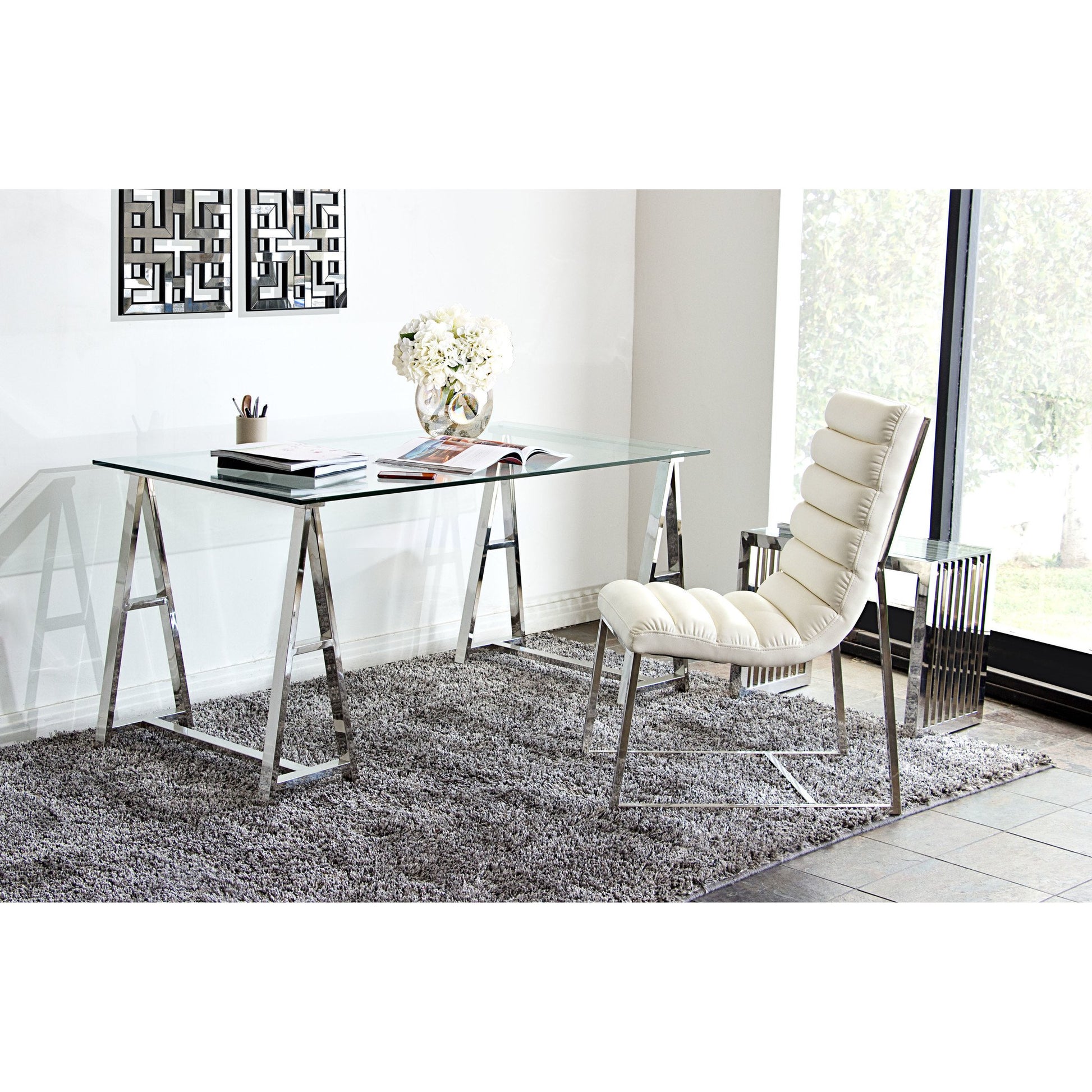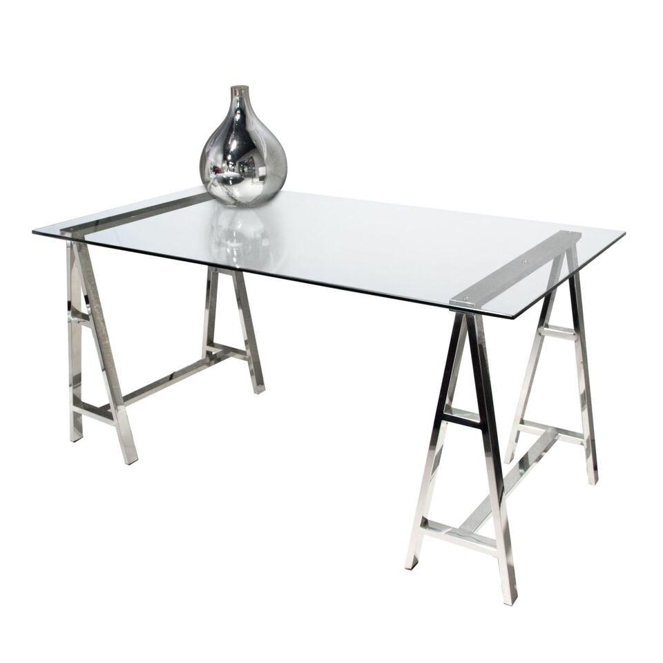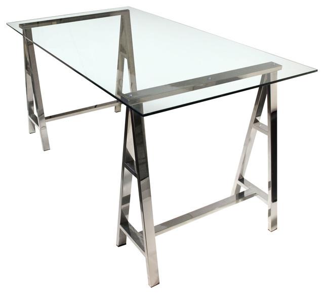 Desk With Clear, Tempered Glass Top, Stainless Steel