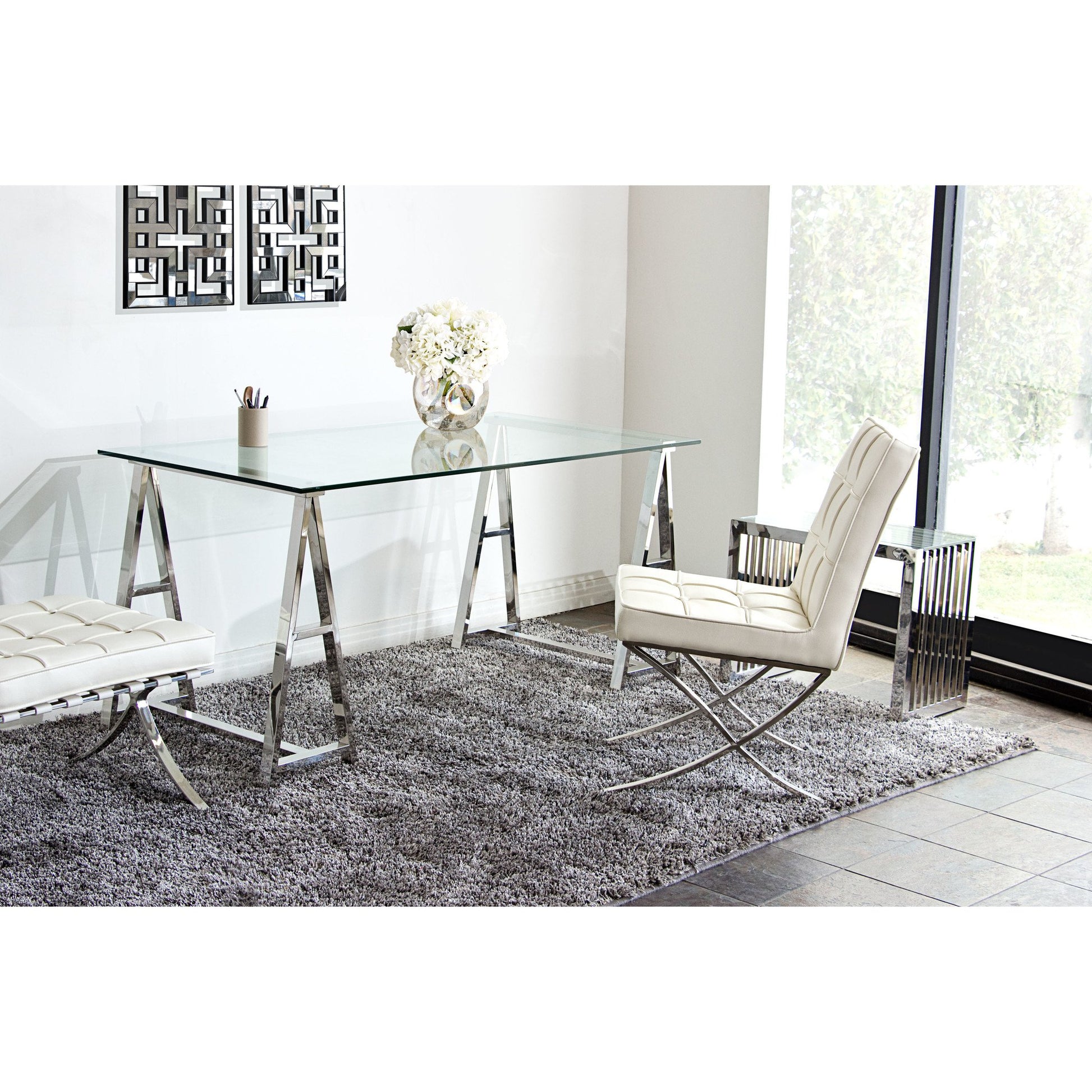 This Desk provides an architecturally inspiring work space for your home or office. With its polished stainless steel base, the stage has been set for organized and stylish work space. The 12mm clear, tempered glass top provides the sturdy open-aired "canvas" for your pleasure.