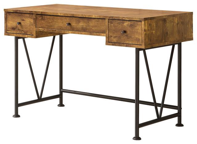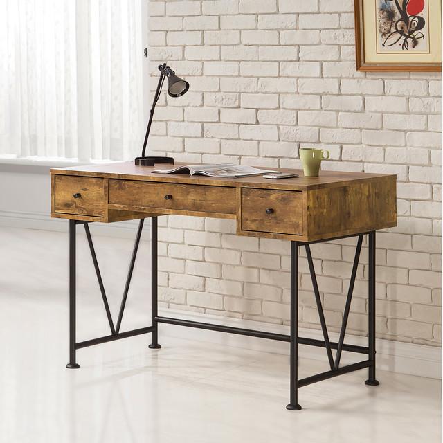 Simple and stylish, this writing desk can be the perfect accent to the home office area in your home. The three drawers are perfect for holding supplies right within reach. The mix of wood and metal give this piece it's industrial and modern style.