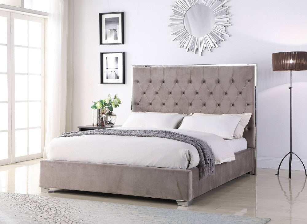 Relax in luxury after a hard day on this Lexa bed. It all began with a clean, linear form; from there, the Lexa Tufted Velour Platform Bed goes for glamour. Sensuous velour covers the tall, tufted headboard, the side rails, and the low-profile footboard. Lustrous chrome runs around the headboard's edges and sparkles forth from the simple yet shapely feet. This platform bed includes a slat system and does not require a box spring foundation.