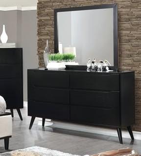 For a quick modern update to your home, this collection will add that trendy mid-century appeal. Coordinating case goods boast slim flared legs and recessed handle drawer pulls.
