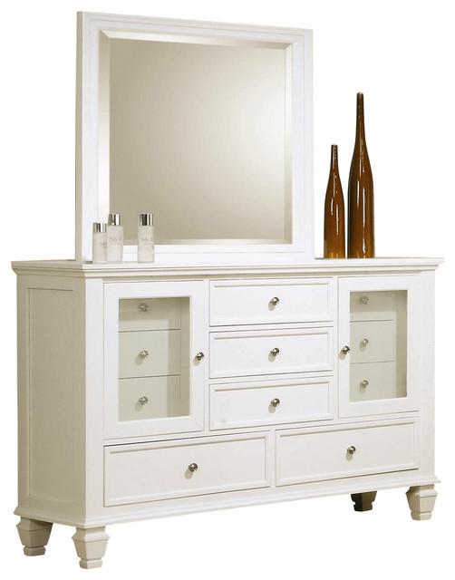 The Sandy Beach collection will infuse your master bedroom decor with clean lines and a classic style. The collection includes a variety of bedroom pieces, with different bed options and plentiful storage to meet your needs. Fully extending drawers are convenient, with durable dovetail construction to last a lifetime. With simple styles and classic molding, you can create a timeless look in your bedroom. Available in Cappuccino, White, and Black finishes on pieces constructed of hardwoods and veneers, these calming bedroom pieces are sure to complement your style and complete your inviting bedroom ensemble.
