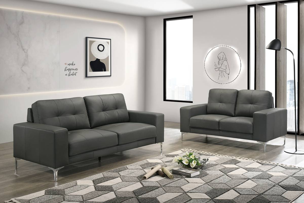 Sofa & Loveseat-Anthracite Gray Genuine Leather